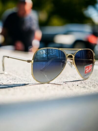 Branded Rb Gold Blue Aviator Sunglasses (With Original Kit)